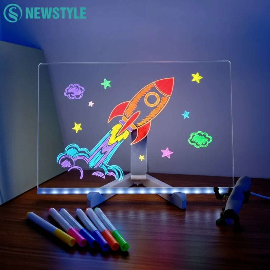 Regardez l'imagination de vos enfants s'illuminer! Avec 7 stylos colorés, chaque idée prend vie et scintille sur le tableau led.